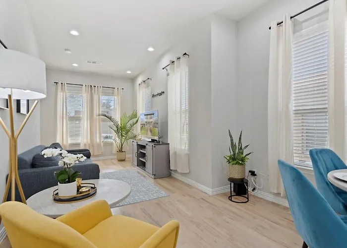 Durante su estancia en la Villa 3Br Duplex - Walk To Bishop Arts - Fenced Yard, los huéspedes pueden hacer uso de una cocina bien equipada con hervidor eléctrico, nevera y un horno para cocinar. La Calle Doce, que sirve una gran variedad de platos, está a 300 metros.